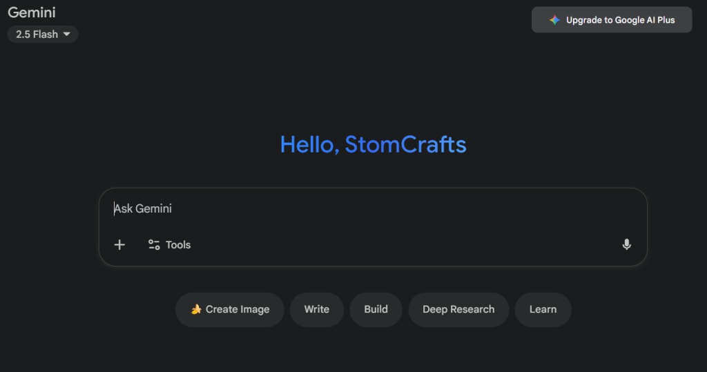 Once you log in at gemini.google.com, you’ll have access to text and image generation features similar to what paid AI image tools like Midjourney or Qwen.